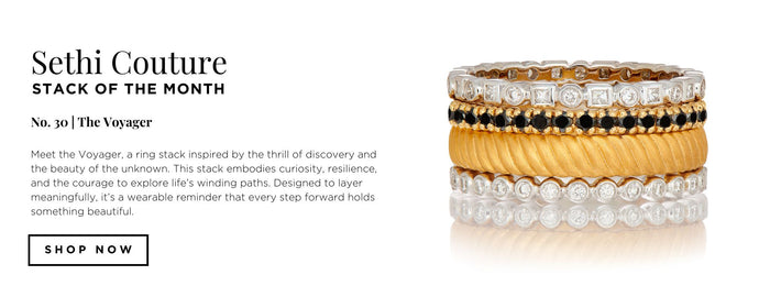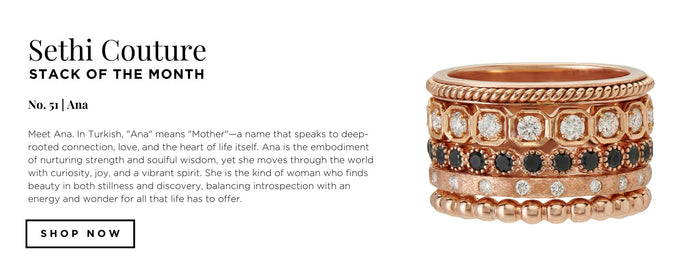 Meet Ziya, a vibrant ring stack of rose-cut and princess-cut diamonds set in warm yellow gold. With its intricate shapes and lively details, Ziya embodies enthusiasm, joy, and celebration, sparkling like a glass of bubbly, full of effervescence and charm. Its radiant design captures the spirit of festivity, making it the perfect accessory for the holiday season or any moment that calls for glamour and cheer.