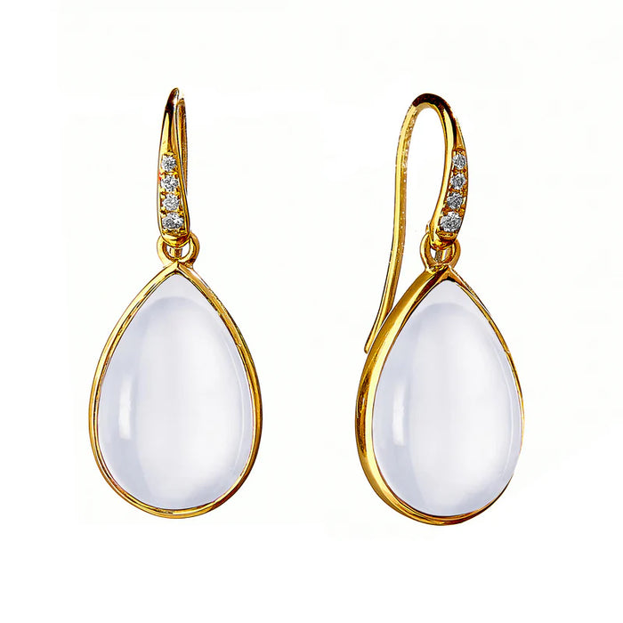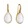 Moon Quartz Pear Cabochon Earrings in Yellow Gold